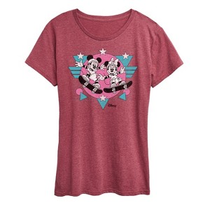 Disney - Mickey & Friends - Minnie & Mickey Skater - Retro Style - Women's Short Sleeve Graphic T-Shirt - Add a touch of magic to your wardrobe with this graphic apparel featuring iconic Disney designs. Showcasing beloved characters and classic imagery, each piece combines nostalgic charm with modern style—perfect for Disney fans of all ages. Whether you're headed to the parks or just adding whimsy to your everyday look, these graphics bring the magic to life.