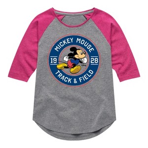 Disney - Mickey & Friends - Track & Field - Runner Mickey - Toddler And Youth Girls Raglan Graphic T-Shirt - Add a touch of magic to your wardrobe with this graphic apparel featuring iconic Disney designs. Showcasing beloved characters and classic imagery, each piece combines nostalgic charm with modern style—perfect for Disney fans of all ages. Whether you're headed to the parks or just adding whimsy to your everyday look, these graphics bring the magic to life.