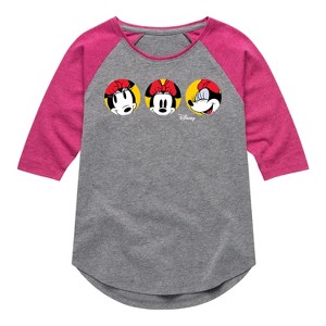 Disney - Mickey & Friends - Minnie Mouse - All the Faces of Minnie - Toddler And Youth Girls Raglan Graphic T-Shirt - Add a touch of magic to your wardrobe with this graphic apparel featuring iconic Disney designs. Showcasing beloved characters and classic imagery, each piece combines nostalgic charm with modern style—perfect for Disney fans of all ages. Whether you're headed to the parks or just adding whimsy to your everyday look, these graphics bring the magic to life.