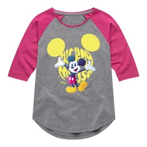 Girls' - Disney - Mickey Logo Shirt Tail Raglan Graphic T-shirt - 1 of 3