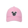 Celebrate your Disney love with this charming pink unstructured baseball cap featuring Mickey Mouse ears embroidered with Minnie's classic white polka dots. Made from soft cotton, this cap combines comfort and style with an adjustable buckle strap for a perfect fit. Perfect for any Disney fan, this hat keeps you cool and stylish while adding a touch of whimsy to your outfit. Hand wash it in cold water and lay flat to dry to keep it looking its best.
