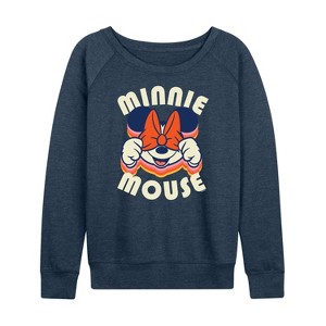 Women's - Disney - Minnie Mouse Repeat Lightweight French Terry Wide Neck Long Sleeve Graphic Shirt - 1 of 4