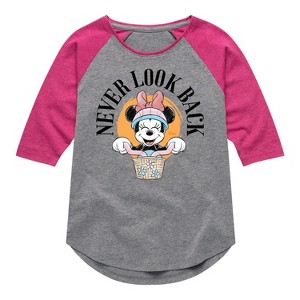 Mickey & Friends - Never Look Back - Toddler And Youth Girls Raglan Graphic T-Shirt - Add a touch of magic to your wardrobe with this graphic apparel featuring iconic Disney designs. Showcasing beloved characters and classic imagery, each piece combines nostalgic charm with modern style—perfect for Disney fans of all ages. Whether you're headed to the parks or just adding whimsy to your everyday look, these graphics bring the magic to life.