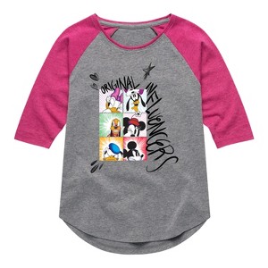 Mickey & Friends - Original Influencers - Toddler And Youth Girls Raglan Graphic T-Shirt - Add a touch of magic to your wardrobe with this graphic apparel featuring iconic Disney designs. Showcasing beloved characters and classic imagery, each piece combines nostalgic charm with modern style—perfect for Disney fans of all ages. Whether you're headed to the parks or just adding whimsy to your everyday look, these graphics bring the magic to life.