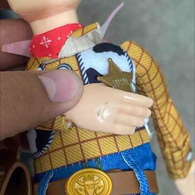 - Woody returns to his roots as a rag doll with a soft body, iconic western outfit made from fabric, and molded plastic head, hat, boots, belt and hands