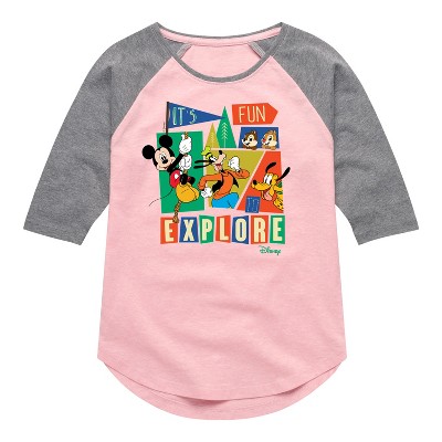 Disney - Play In Progress - Toddler & Youth Girls Raglan Graphic T-Shirt - Add a touch of magic to your wardrobe with this graphic apparel featuring iconic Disney designs. Showcasing beloved characters and classic imagery, each piece combines nostalgic charm with modern style—perfect for Disney fans of all ages. Whether you're headed to the parks or just adding whimsy to your everyday look, these graphics bring the magic to life.