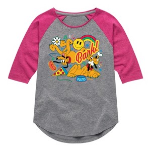 Girls' - Disney - Pluto Collage Shirt Tail Raglan Graphic T-shirt - 1 of 4