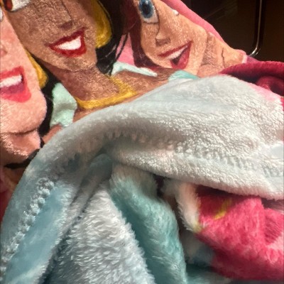 The colors on this blanket are so bold - it is gorgeous! The princesses are clear and legible print, none of the fabric is falling off of the blanket .. I haven’t washed it yet so I can’t comment on the color fading. But my BIGGEST con about this blanket which is why I rarely grab it to use since it’s Winter is that it’s super thin!! If you want something warm.. this is not it!!! I personally prefer thicker soft and plush blankets that keep you cozy at night, but this would be a lighter lounge throw - that ‘Perfectly Soft Summer Fab’ situation. Also to further explain the climate I live in per my review, i’m in Arkansas.. so right now, the nights are 12 degrees and freezing!!! If you live in California where it’s sunny all year round, this blanket will be a great option for you :) hope this helps!!!