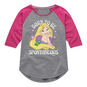Disney Tangled - Rapunzel - Born To Be Spontaneous - Toddler & Youth Girls Raglan Graphic T-Shirt - Add a touch of magic to your wardrobe with this graphic apparel featuring iconic Disney designs. Showcasing beloved characters and classic imagery, each piece combines nostalgic charm with modern style—perfect for Disney fans of all ages. Whether you're headed to the parks or just adding whimsy to your everyday look, these graphics bring the magic to life.