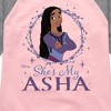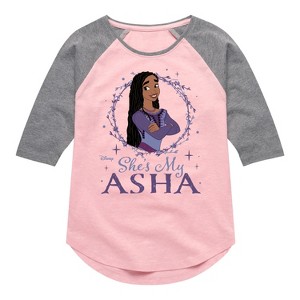 Disney Wish - Shes My Asha - Toddler & Youth Girls Raglan Graphic T-Shirt - Add a touch of magic to your wardrobe with this graphic apparel featuring iconic Disney designs. Showcasing beloved characters and classic imagery, each piece combines nostalgic charm with modern style—perfect for Disney fans of all ages. Whether you're headed to the parks or just adding whimsy to your everyday look, these graphics bring the magic to life.