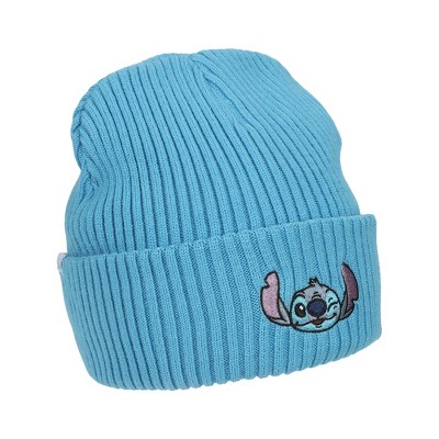 Bring a touch of Disney magic to your winter wardrobe with this blue Stitch cuff beanie. Featuring an embroidered Stitch face on the cuff, white pearl appliques on the front, and a white faux fur pom, this beanie adds playful charm to any outfit. Made with acrylic knit materials with a satin lining, it provides warmth and durability. This beanie is one size fits most. Hand wash it in cold water and lay it flat to dry for easy care.