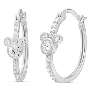 - Officially Licensed Disney Jewelry: Exquisitely crafted Mickey Mouse hoop earrings with the classic Mickey icon featuring brilliant Clear cubic zirconias (April birthstone) centered on a silver hoop adorned with clear CZs