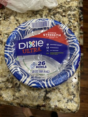 - Responsibly Made: Dixie Ultra® disposable paper bowls 20 oz deliver the same strength and performance, but with the added benefit of being compostable except in California.