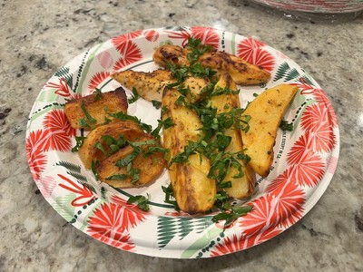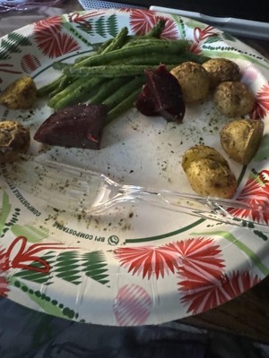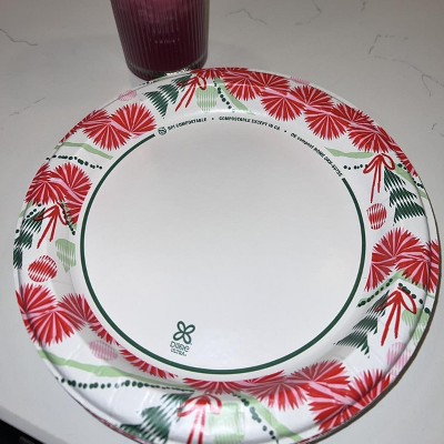 These plates are sturdy and have a nice holiday pattern printed on them. They are big enough for all the holiday food to fit on and they won’t leak.