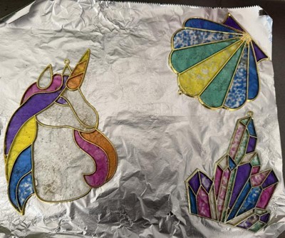 Should have read reviews before making these. (1) Like someone else said, I had to help my child do most of this as she had a hard time getting the crystals where she wanted them. (2) I baked them at 350 per directions (which were hard to find, tucked behind gold backing in box) and they wouldn’t melt. Finally referred to other reviews and upped the temp to 425/450. (3) had to take out twice and fill in areas that had thinned out. (4) smelled up my kitchen like melting plastic which I expected as the directions warned of that. ** end result was good though, my daughters love them. Just would’ve been an easier process had I read reviews