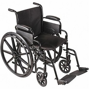 Comfortable, Convenient Wheelchair for Home and On the Go! This reliable, durable wheelchair from DMI makes it easy to transport your loved ones to and from vehicles, doctor’s appointments, shopping malls and other excursions. The mag-style wheels glide easily over many floors and surfaces for a smoother ride. Enjoy superior comfort as you roll with the embossed upholstered seat and seat back, padded armrests and lightweight foot plates It also folds nicely for easy storage and transport The easy-to-use push-to-lock brakes securely keep your wheelchair in place – one less thing to worry about. This is an excellent wheelchair to have around whether you are in the house or out and about. The mag-style composite wheels easily glide over many floors and surfaces. Built to last! Solid chip-resistant, chrome-plated, carbon-steel frame construction remains sturdy and durable through repeated use. Superior comfort with lightweight foot plates and padded armrests and embossed upholstered seat and seat back. Enjoy a cozier experience as you roll around in this wheelchair. iEasy to use push-to-lock brakes securely keep your wheelchair in place – one less thing to worry about. An excellent wheelchair to have around the house and when you are out and about. Width open: 26 inches Width folded: 9 ½ inches. Seat to floor height: 19 inches. Seat width: 18 inches. Seat depth: 16 inches. Back height: 18 inches. Weight: 41 pounds. Weight capacity: 250 pounds