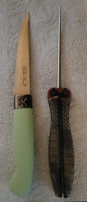 [This review was collected as part of a promotion.] This is a good tool to have. I'm not very good at sharpening my scissors or knives but using this sharpener made the process pretty easy. The tip is sharp so you have to be very careful not to stick yourself like I did.