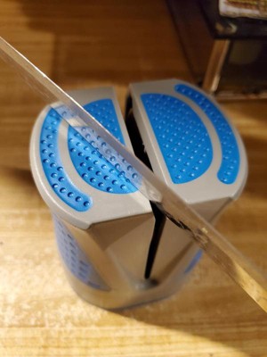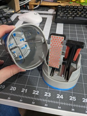 [This review was collected as part of a promotion.] Love this guy- keep him on the countertop and freshen up my blade every few few times I use it for heavy work. Works like a charm and stays solid with the rubber bottomed non-slip feet. Would def reccomend for touch up work!