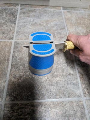 [This review was collected as part of a promotion.] This sharpener is one of the best that I have used .. super easy and I really like the sharpening stones … I feel like the fine grit sharpens like a champ … the only thing that would make this better is if it had a suction cup the hold it on the counter… but very easy to use