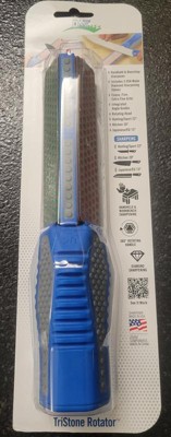 [This review was collected as part of a promotion.] I love how easy the DMT Tri Stone Rotator Sharpener is to use. So far, I've used the red and green sides. They did an excellent job. It says the blue side is for restoring the edges of knives. So far, I've had no need to try it, but if it works as well as the other two sides, I'm sure it's great.