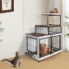 Dog Crate Furniture with Stairs, Wooden Dog Kennel Indoor with Double Doors, Cat Tree
