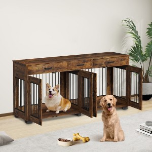 Dog Crate Furniture with Storage, Indoor Wooden Dog Kennels, with Drawers and Dividers, Double Dog Crate Furniture, Side Table Dog Crates