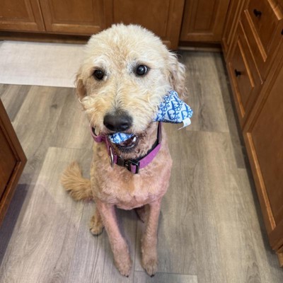 [This review was collected as part of a promotion.] We have a large 60lb Labradoodle who loves to carry things in her mouth. Although I could have bought her the large toy the small was perfect with how our dog likes to play with toys. The Dogior bone is cute and funny because it’s a play on my grandmas favorite purse and product line. The filling has a crinkle texture to it and our dog loves to carry it around the house and sleep with it. I would recommend this for dogs that are hard chewers but for our girl this is perfect. I received an incentive to write this review.
