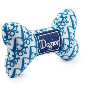 [This review was collected as part of a promotion.] I purchased this dog toy online. This "bone" features a faux designer label and is the perfect accessory for even the fanciest dog. My dog goes through a new toy about every 2 or 3 days so I am constantly looking for new and cute toys for him to play with (and destroy). He will play with this bone for a day or so until he gets all of the stuffing and the squeaky toy out of it. He loves to play fetch with it and he hides it under the couch. It's a bit pricer than other toys I have bought in the past, but the designer label makes it a bit of a novelty and fun. I received an incentive to write this review.