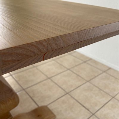 Wonderful table for the price. Beautiful style and color. Don’t hesitate to buy this piece. Lighter color in person, which is what I was looking for. We’ve only used it a few times so I cannot confirm durability however it seems to be holding up well with toddlers.