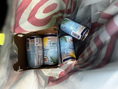 The juice is fine but Target drive up people are rough. I was handed this bag and the can were loose and the one can all dented. There is no shame in the work ethic that goes on at Target. The fact it is all thrown in the bag as well. Shame on Target supervisors for allowing this to happen