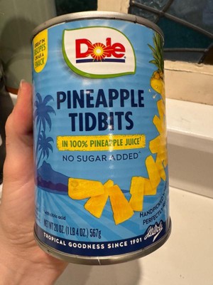 The Dole Canned Pineapple Tidbits are always my go to snack! They are the perfect size, juicy with a slight crunch. Completely refreshing and sweet! No mess or hassle, just pure joy from the opening of the can to the very last bite.