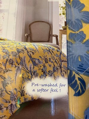 King 3pc Dolores Comforter Set Yellow/Blue - Lush Décor: Reversible Quilt & Shams, Botanical Pattern