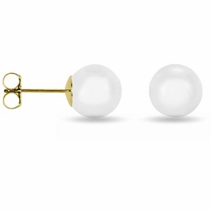 These 14K solid gold pearl stud earrings are a classic addition to any wardrobe. Each pearl is 8mm, and made of lab created materials for superior durability. They are stamped 14K, and come with butterfly posts that will provide a secure closure, ensuring your earrings stay where they belong. Enjoy the beauty of real 14K gold, and never worry about taking your glamorous look off.