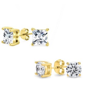 These 925 Solid Sterling Silver earrings feature 14K Yellow Gold plated silver with two different stone shapes and sizes: 5mm square and round crystals. Crafted with a lead and nickel-free composition, these earrings are sure to make a lasting impression. Metal: Sterling Silver Stamp: 925 Plating: 14K Yellow Gold Over Silver Metal Stone Type: Crystal CZ Stone Shapes: Square And Round Stone Size 5mm Lead And Nickel FreeThese 925 Solid Sterling Silver earrings feature 14K Yellow Gold plated silver with two different stone shapes and sizes: 5mm square and round crystals. Crafted with a lead and nickel-free composition, these earrings are sure to make a lasting impression. Metal: Sterling Silver