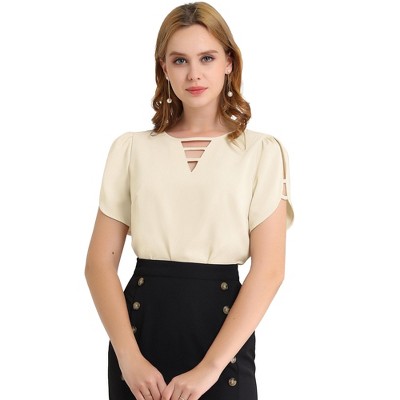 I bought this top in cream, size medium. I'm 5'6", 150lbs & 34E on top, and this top fit perfectly. Love the style and it is good quality. I plan to order it in the blush color.