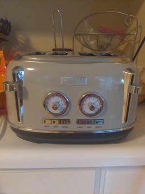 This 4-slice Dorset toaster was a welcomed addition to our home. I was a little apprehensive about how the vintage look would complement our kitchen and was pleasantly surprised to see how stylish it looked! The handles are easy to use when lowering toast or bagels but I really have to say how excited I am with the "extra lift" it provides to make accessing smaller items a breeze. The removable crumb tray makes cleanup extremely easy and I love that I can clearly see how many minutes I am adjusting it to. Bonus - it's one of the lightest toasters I've ever owned!