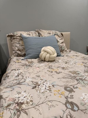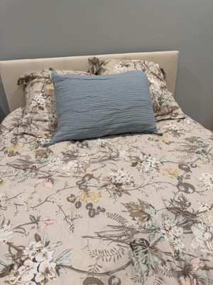 This is a beautiful pillow sham that has a hidden zipper and fun corner tassels. It's easy to get a pillow in and out of and looks great on the bed. I like the sort of messy look of the fabric, which adds some texture and character. No complaints!