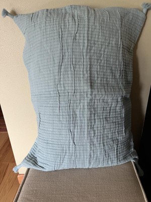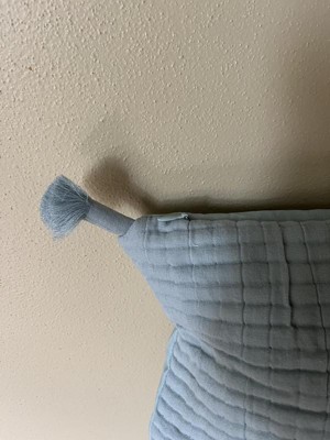 The blue on this sham is beautiful! The fabric is soft and it works perfectly with the other neutrals in my daughter's space. The tassels are a cute touch but could be a little larger. I want to get an overstuffed pillow which I think will make it look even better.