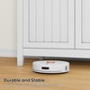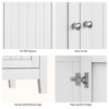 Sturdy and Stable: Made of MDF with classic white spray paint finish. Soft-closing doors and fixed shelves ensure long-lasting functionality.