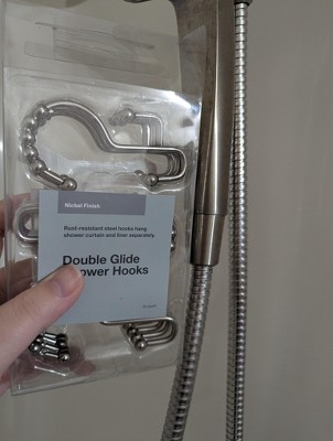 Excellent product! Exactly what I wanted. Small price for easier access to wash my liner ( cotton not plastic) and curtain. Double glide shower, hooks rust proof they look perfect for what I need them to do.