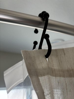 These are a unique shower curtain hook design that allow you to easily hang a shower liner and curtain on the same hook and swap one or the other without having to take both curtains off. I actually like that these are plastic because they glide along the curtain rod really easily compared to metal ones. I took off a star because I don't love how these allow for a little gap between the top of the curtain and the rod. The black color is great and goes well with our bathroom.