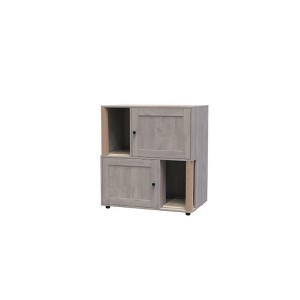 This gray double-layer XD901 cat litter enclosure uses durable PB board. It hides litter boxes for a tidy home, offers extra space for cat toys, and features a neutral finish that blends with any interior style.