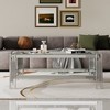 Double-Layer Tempered Glass Coffee Table with Mirror-Finished Stainless Steel Frame and Luxury Design with Easy Assembly
