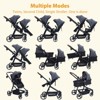 - Folding & Safty Design: The tandem Strollers have a convenient folding design for easy storage and carrying. Shockproof front wheels and rear wheels with one-step brake ensure safety. Equipped with a 5-point safety belt for each seat.