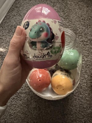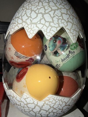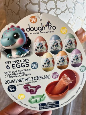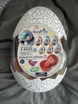 The dough pro large egg container is awesome as it has several lil eggs that are filled with playable dough and a cookie cutter to make dinosaur shapes with, it comes with several colors and is great for anyone who likes to craft, id definitely recommend.