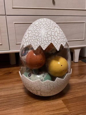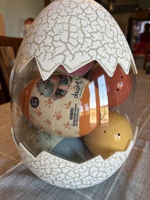 My niece is obsessed with dinosaurs these days. The Dino egg packaging makes this moldable dough set even more fun. Plus, it provides a handy storage container when playtime is over! Each egg contains molds and dough.