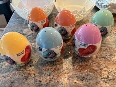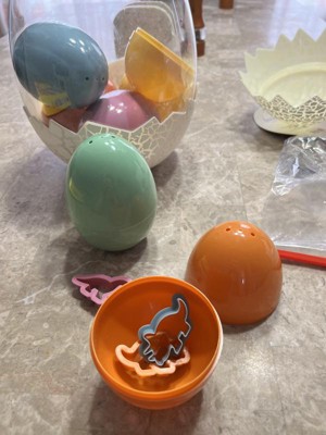 My kids were so excited to crack open the eggs and they were not disappointed! They have been having so much fun playing with brightly colored dough and making Dino shapes. This has really encouraged their creativity and an interest in dinosaurs. Would strongly recommend!