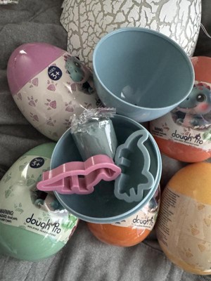 I love that this Dough Pro Large Egg Dino comes with 6 individually packaged doughs with two cookie cutters. I have two kids so each was able to pick three color eggs. The dough is soft and mailable which is a top priority.