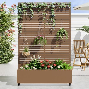 47" H×47"W Dovelina Gray Metal Planter Box with Trellis Privacy Screen for Patio