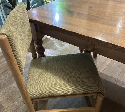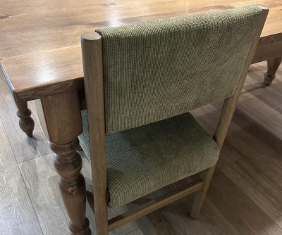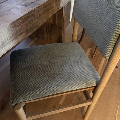 This is a beautiful chair but I do agree with other reviews that the straight back is a bit uncomfortable. It’s not a huge issue for me, as me and my husband are both short, but it does hit you right in the middle of the back and there is no curve whatsoever. Really a shame that they didn’t add just a slight bend to the back support. I will keep anyway because I love that the fabric can be removed and washed, and the wood tone is slightly cool gray, which is hard to find. I have the Emerson reclaimed dining table from West Elm and this matched perfectly.